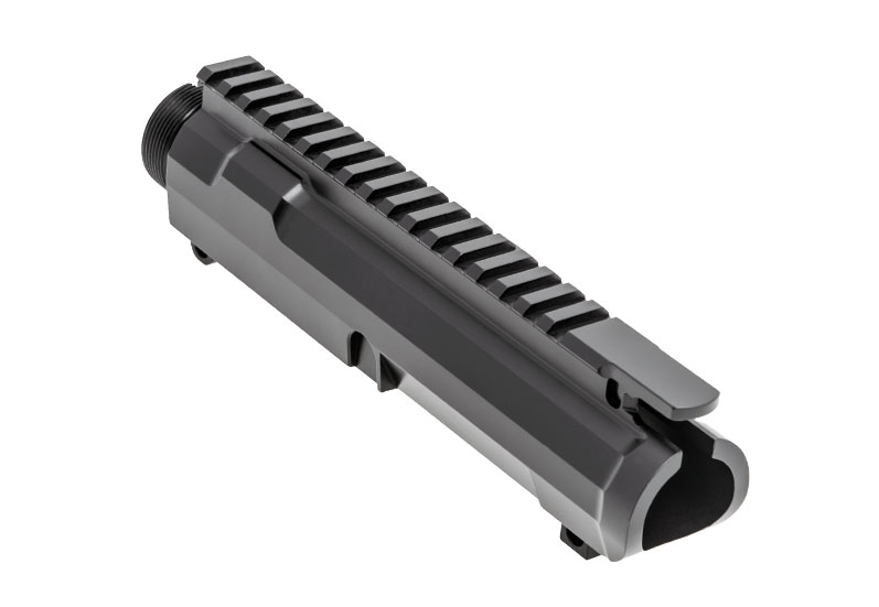 $225Our upper receivers start with USA Milled 7075 Aerospace Alloy Aluminum, then saw cut to length on our Programmable CNC Marvel Saw. Lathe operations are performed on live tooling Mazak Machines, and then transferred to our New Haas SS mills with Touch probe Capabilities. After machining, parts are sent out for a hard coat anodize process.