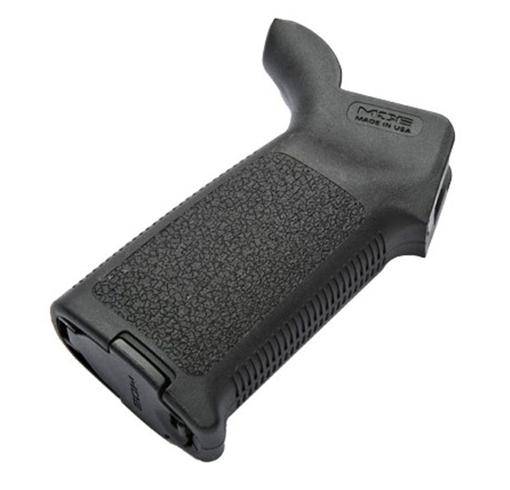 $19.95The Magpul MOE Grip Drop in upgrade for Pistol Grip, It improves rifle handling during precisely aimed shotsRigid, fully supported one-piece construction from reinforced, high-impact polymer, with crackle texture on the sides and deep horizontal grooves on frontstrap and backstrap to keep your hand firmly in place, even when wet.Curved beavertail fills the grip-to-receiver junction to help you maintain a comfortable hold and protect the web of you hand during sustained firing.Removable grip cap provides access to a roomy internal storage compartment for spare Qbatteries, cleaning supplies, small bottle of oil, or even a spare bolt.